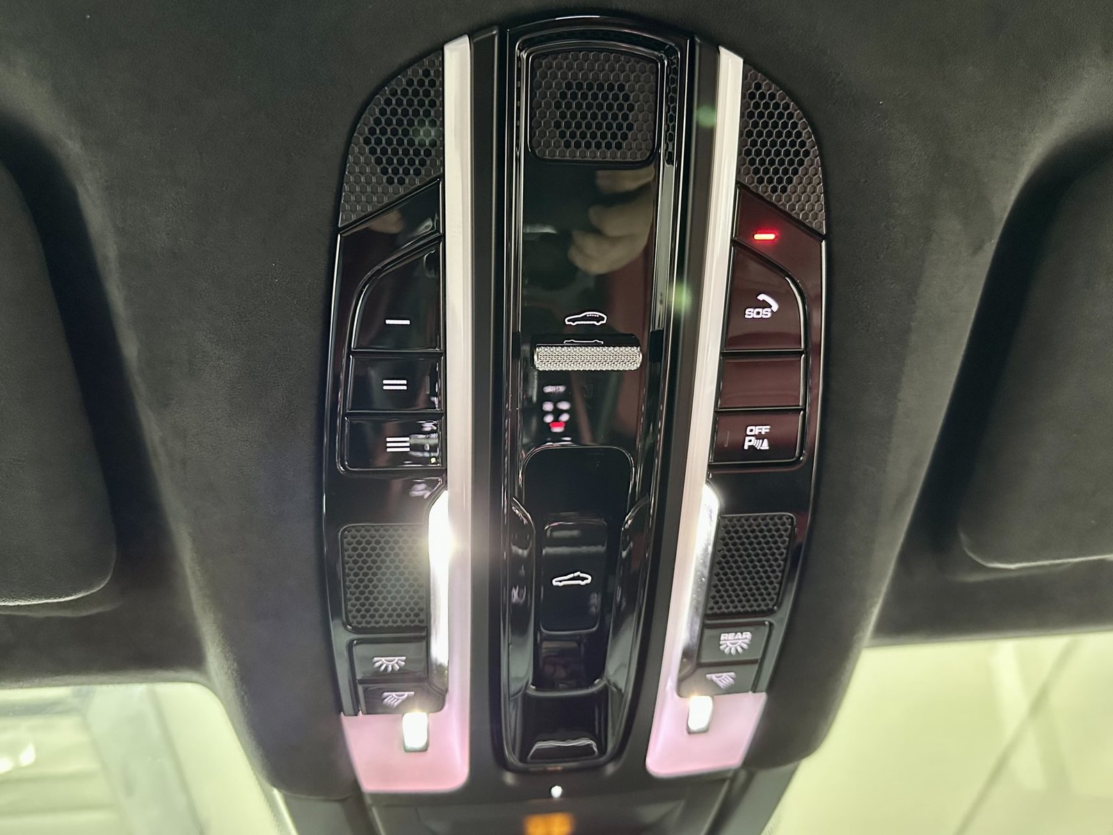 -Потолок перешит в черную алькантару