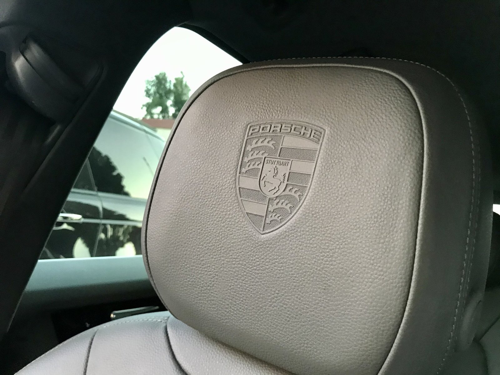 Тиснение герба Porsche на подголовниках